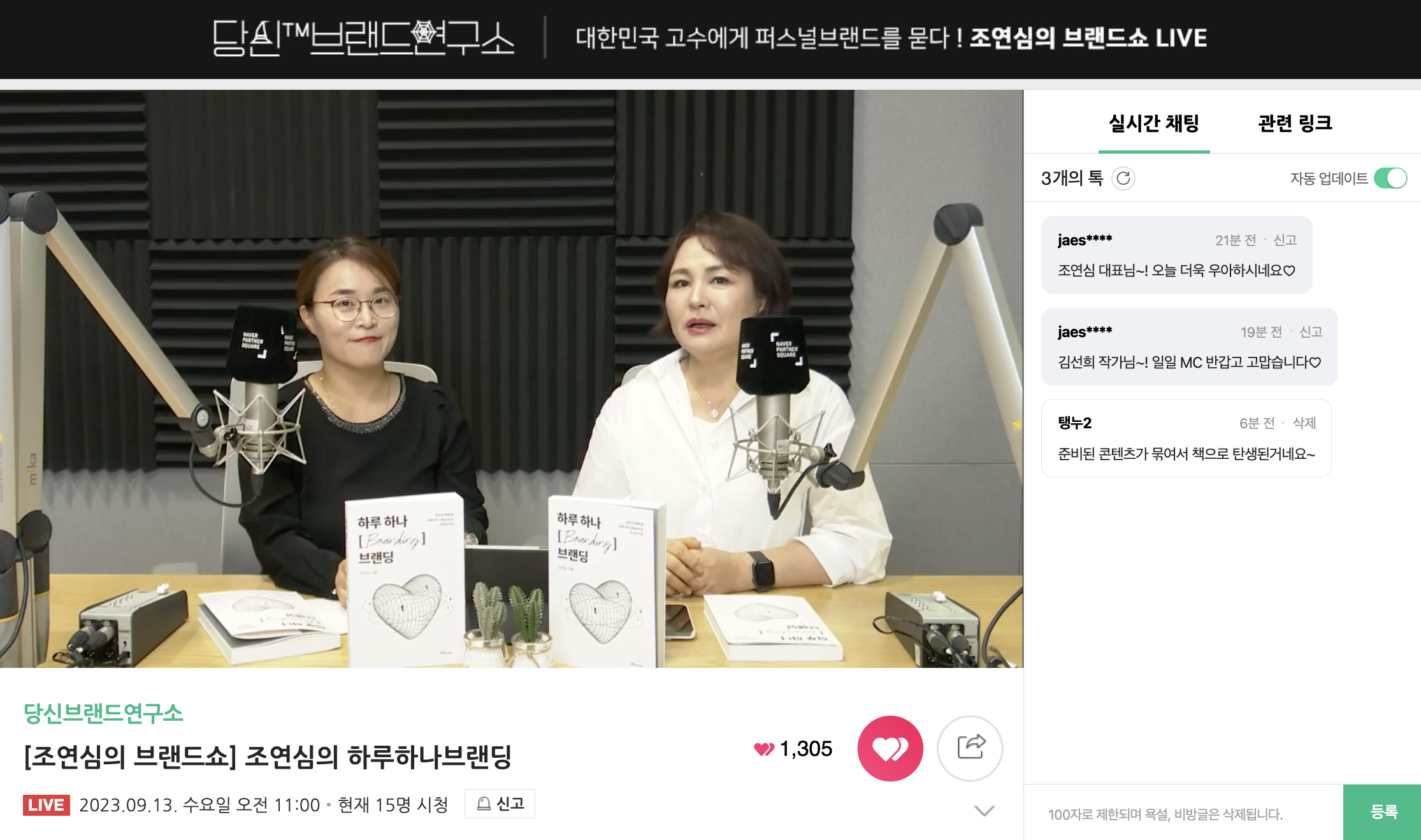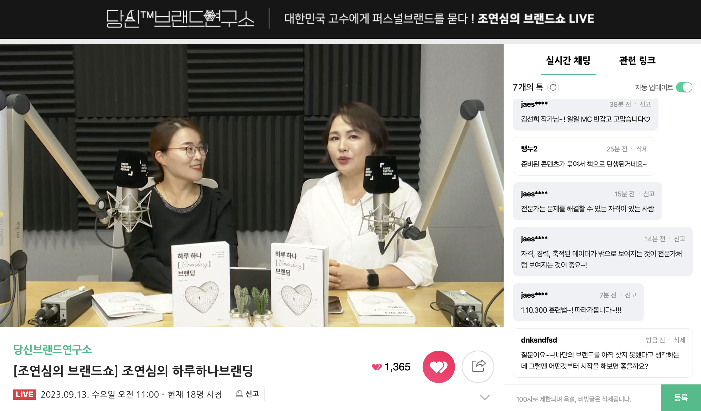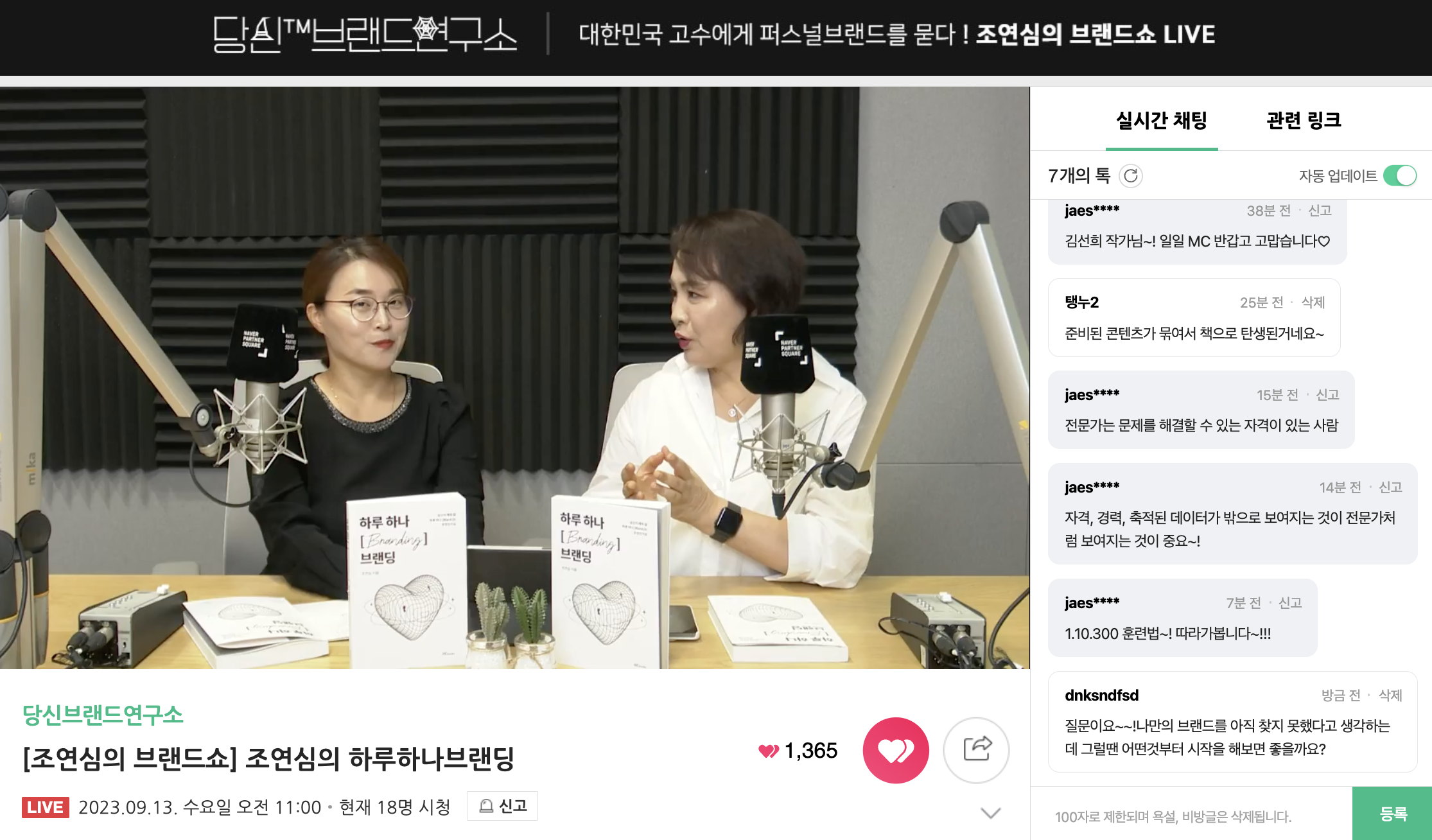 #조연심의브랜드쇼 #하루하나브랜딩 #조연심 저자 편 / 특별MC 김선희 #훈민에듀코칭 대표, 전 #파블로를읽어요 시즌6 진행자